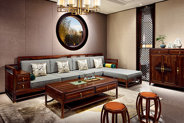新中式沙發家具中有關色彩的搭配很重要,色彩一定要符合工作場所的氣氛,還要搭配出亮色調,提升整個氛圍。